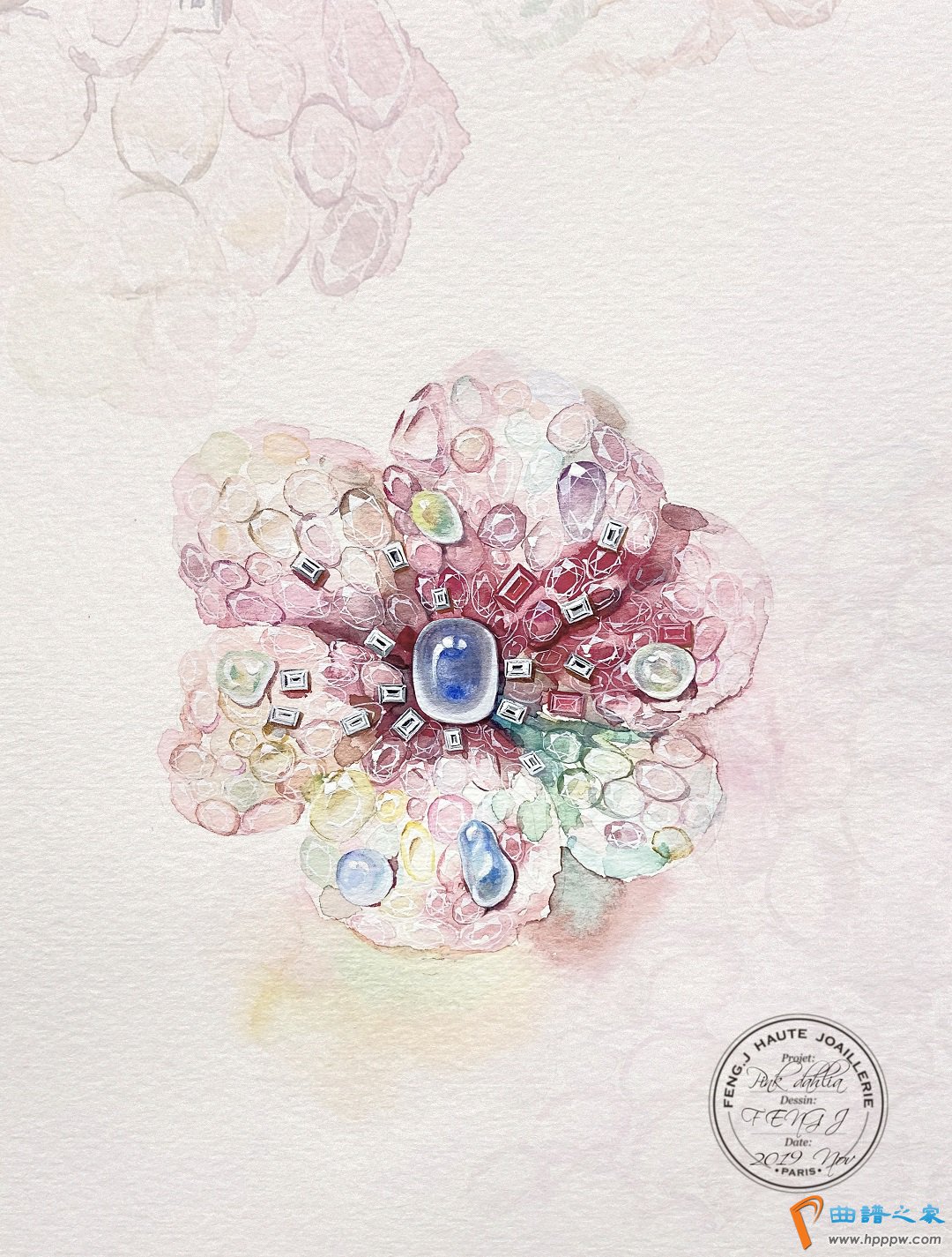 FENG J的创作理念是 “Painting with Gemstones“(以宝石入画),在微妙方寸间运用如调色板上颜料般的宝石构成绘画色调感(Painterly Tone)珠宝,让色彩堆叠、光影变幻达到穿透性极致,诞生如印象派画风般灵动不朽的艺术珠宝作品。