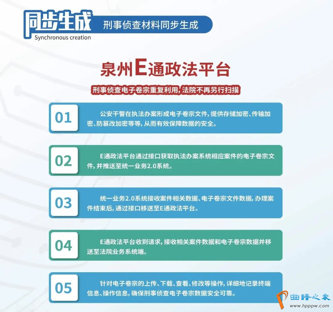 依托泉州市委政法委2021年7月建成并开始投入使用的“E通政法”平台,针对公安机关从源头开始制作并形成的刑事案件电子侦查卷宗,直接在线接收,不再对纸质侦查卷宗另行扫描。