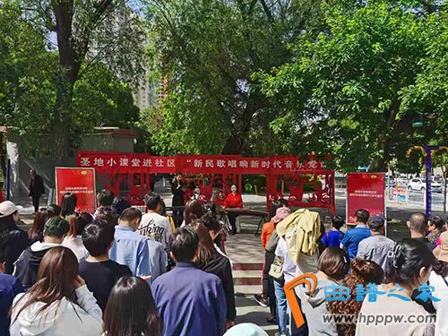 图为:2021年5月26日, 延安“新时代、新民歌”文明实践文艺宣讲师在宝塔区南桥社区南桥广场开展音乐党课“六进活动”