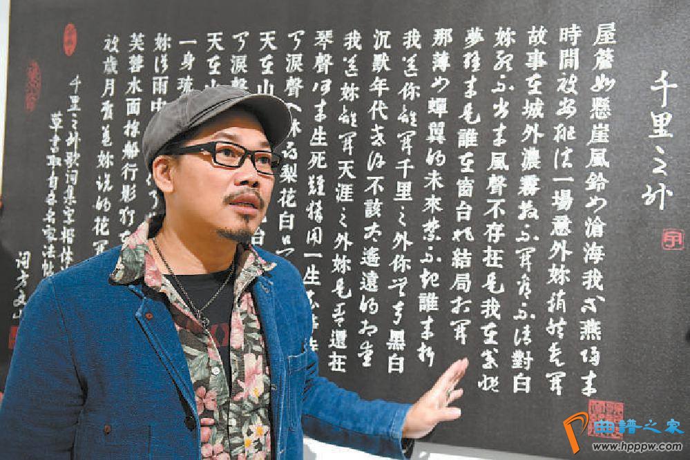 聊到书法,方文山立刻打开了话匣子。“我是书法的爱好者,但是写得很差。”他认真地分析说,“我觉得书法是传统领域里很具民族性的艺术创作。中国人可以通过学习去理解达达主义、波普艺术、浮世绘,但是外国人要怎么学书法呢?除非先懂中文,才能真正领悟书法的美,才能欣赏它浓淡干湿的墨色,和写在宣纸上的布局美、结构美、留白美。书法之所以吸引我,是因为它的民族美学的纯度很高。现在很多艺术家已经试着把书法用不同的形式去表现,像我这次就做了很多尝试,如果能颠覆它原有的书写形式、书写材质,是可以跟当代艺术接轨的。”