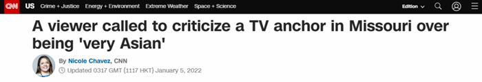 【环球网报道】据美国有线日报道,密苏里州圣路易斯市一名新闻主播兼记者米歇尔·李,因在节目中介绍自己的新年元旦大餐选择是“吃饺子”,而遭到一名观众的种族歧视,声称她“非常亚裔”(veryAsian)。不过,报道称,就在这名女主播因此受到伤害的数小时后,美国不少亚裔民众陆续站了出来、为她声援。…