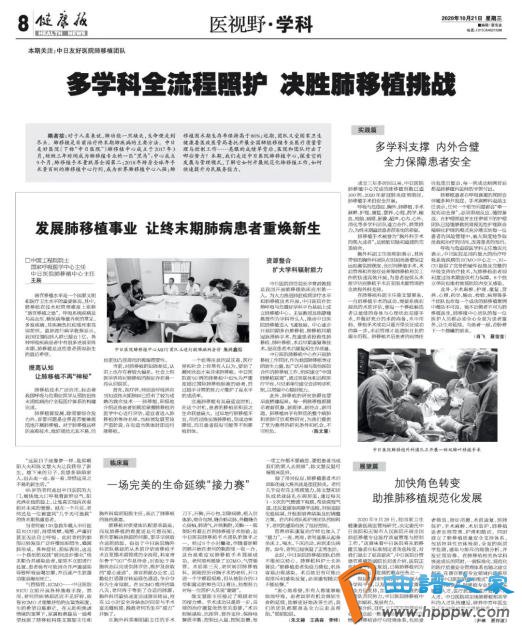 据介绍,目前,中日医院肺移植中心已建立起一整套完备的适合我国国情的肺移植诊疗与管理体系,包括受者筛选、指征把握、术前康复、供肺保护、手术麻醉、术后监护、肺移植患者长程管理、护理和随访。同时建立了肺移植质量安全支持体系,包括特异性抗体检测,全面的病原学监测,感染与排斥的细致分析,并发症预防等。在肺移植相关各学科快速成长的同时,一套标准化、规范化的医疗质量安全管理体系也随之建立起来,在专业领域内逐渐形成了“中日医院肺移植模式”。