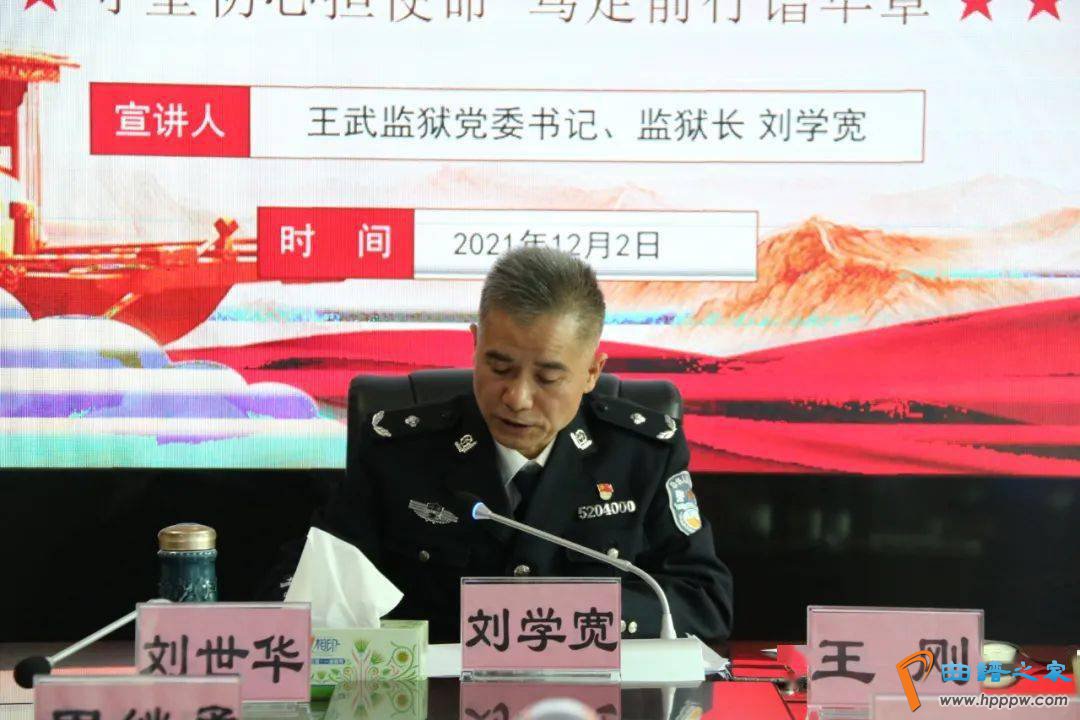 为全面准确深入学习领会党的十九届六中全会精神,持续掀起全监学习宣传贯彻全会精神热潮,根据上级党委安排部署,12月2日,王武监狱党委书记、监狱长刘学宽作题为《守望初心担使命 笃定前行谱华章》的全会精神宣讲报告。