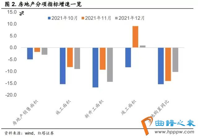红塔证券李奇霖分析,12月房地产开发投资延续下行趋势,全国房地产开发投资两年平均增速是-2。98%(前值+3。04%),除竣工端在正区间外,销售、施工、新开工和土地购置同比增速仍在负区间。2021年上半年房地产销售、投资数据比较亮眼,这对2022年会造成一个基数效应,预计2022年至少在一季度可能会继续向下。