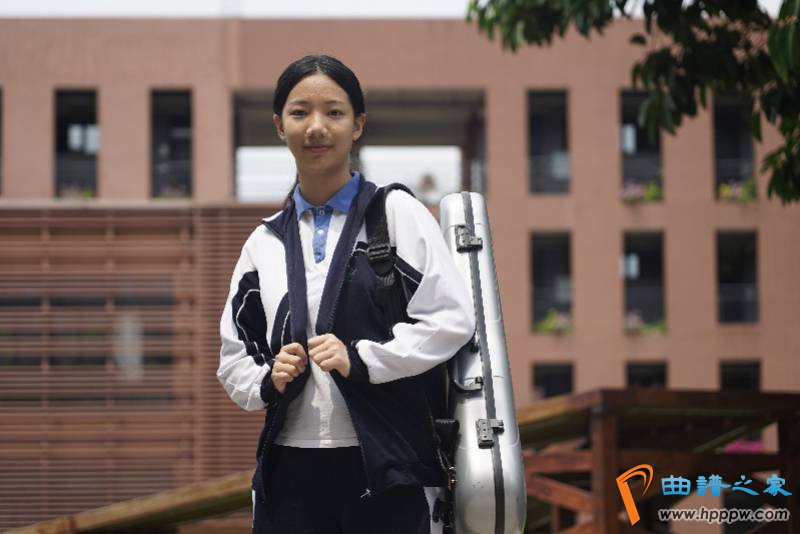 采访当天见到张宇宣时是中午十二点半左右,她刚吃完午饭,准备在接受采访后参加一点四十分开始的乐团排练。她身穿一套校服,绑着马尾,手里拎着琴盒。从校园里一眼望过去,她或许并不是那个最显眼的女孩,但是最近因为原创歌曲爆火,她成为了校园的焦点,连校门口的保安对她也有所耳闻。