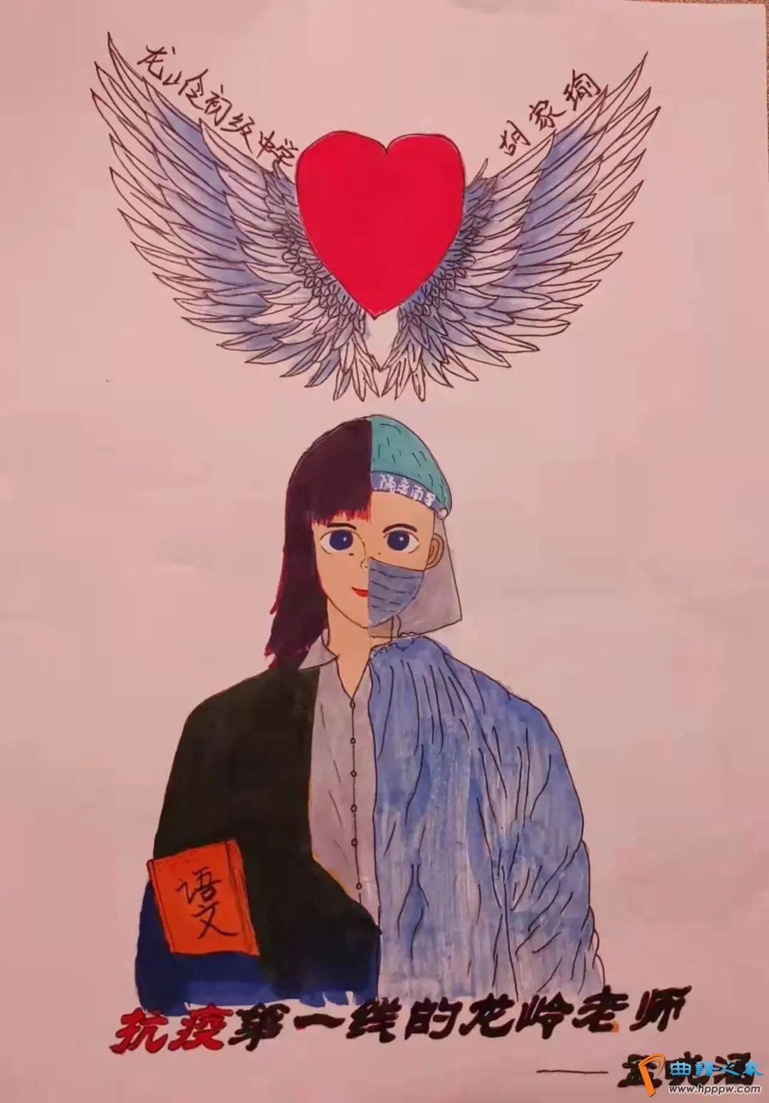 龙岭初级中学八年级英语老师孟晓涵,是龙岭教育集团首批支援社区防疫工作的老师之一,疫情发生后坚守在防疫一线,工作一丝不苟、耐心细致,学校的孩子们也用一张张图画表达了对孟老师及其他抗疫一线工作者的敬意。