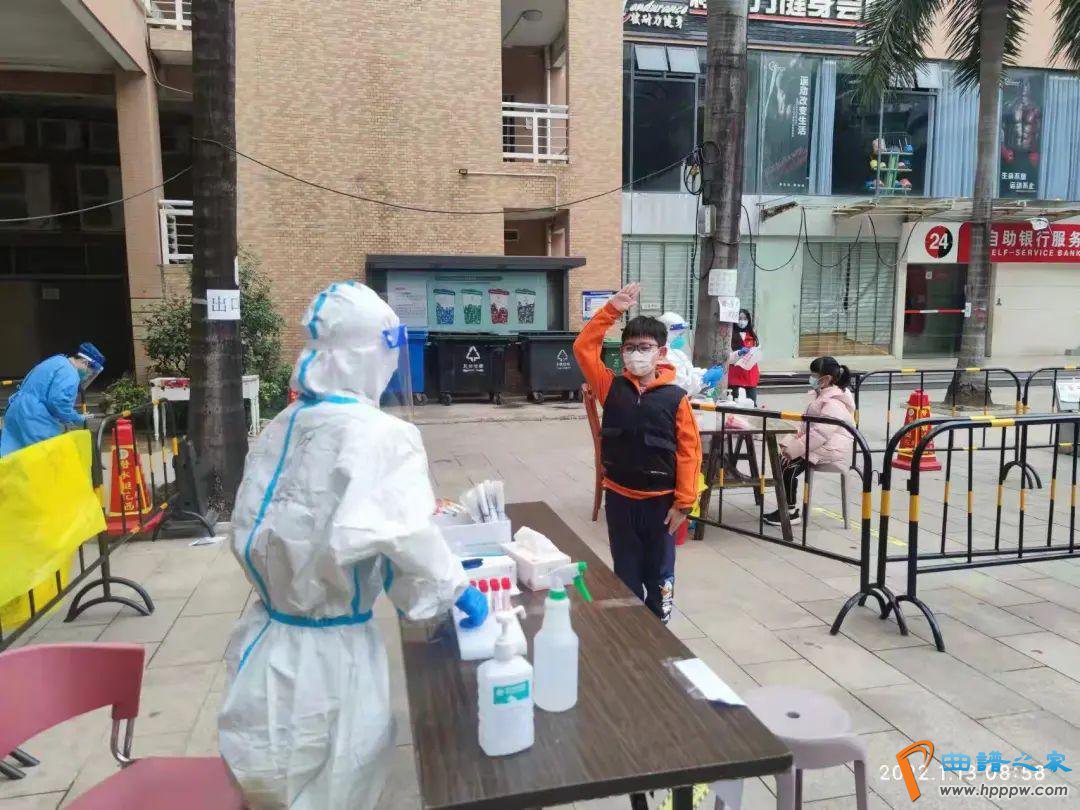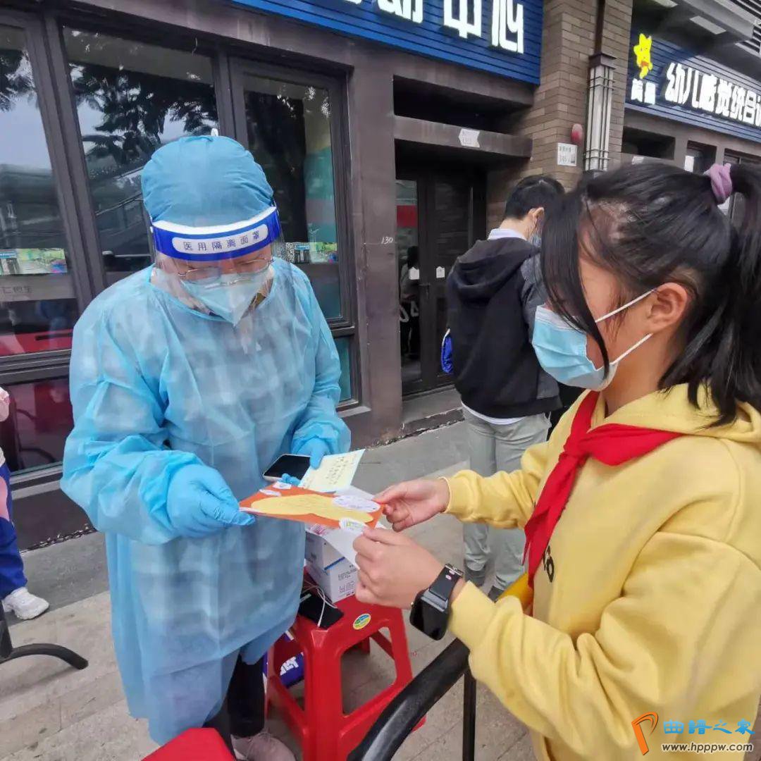 “我想向每一位做核酸检测的医生叔叔阿姨致敬!我想对维持现场秩序的义工老师们说一声谢谢!……希望每个人都开开心心,不要被口罩挡住了笑脸。”