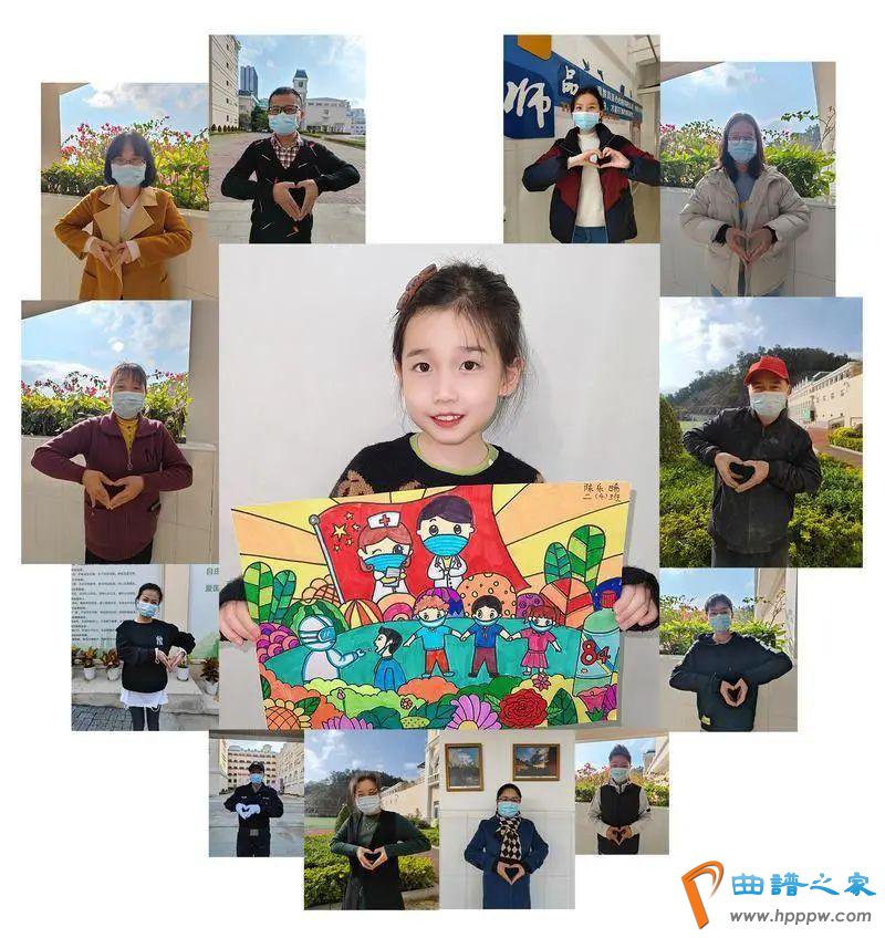 龙外(集团)新亚洲学校二(4)班的陈乐晞,看到老师们和医护工作者的辛勤付出后,画了一幅画表达感谢。随后,在校的安保人员、清洁人员、电力维修人员等职工也用自己独特的方式,致敬奋战于一线的抗疫英雄们:每个人都用手在胸前比划出一个爱心,一颗颗爱心象征着每个温暖的龙外(集团)“新”亚洲人。