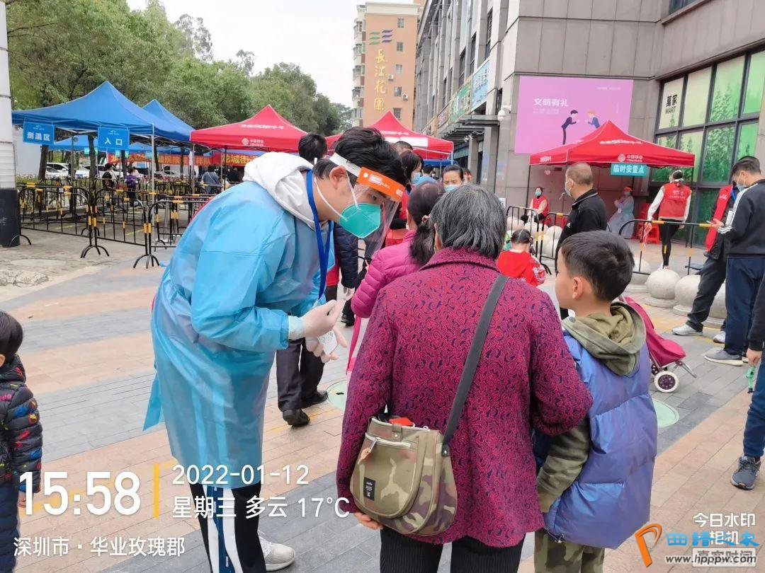 1月11日上午,龙岗区坂田街道第五园社区启动了第三轮核酸检测。完成采样的居民可领到通关“爱心贴”,凭该贴纸方可出入小区。