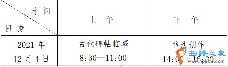 要求:古代碑帖临摹和书法创作,皆须竖式书写,充分利用纸面,章法完整协调、字体大小合适、字序准确、不漏字错字。临摹要求形神兼备,点画生动,考生基本功扎实;创作除上述要求外,还需布白合理,考生具有较高的笔墨把控能力,充分反映其艺术个性与审美追求。此外,有繁体的字须使用繁体字,落款不得书写与规定内容无关的字、不得钤盖印章。