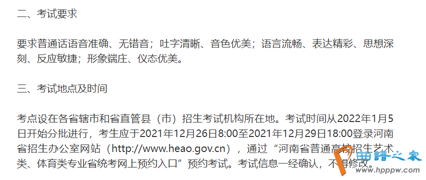 1。2022年艺术专业省统考美术、书法、编导制作、音乐类笔试科目、声乐主科、播音主持类全省统一组织,各省辖市、直管县(市)分散实施考试;音乐类器乐主科、舞蹈类全省集中设点考试。表演类仍实行现场考试,由全省统一组织,委托高校具体实施。