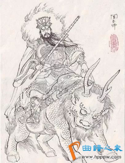 九天应元雷声普化天尊:或称九天应元雷声普化真王,主雷雨之神,是雷部的最高天神。明代《封神演义》中为太师闻仲。