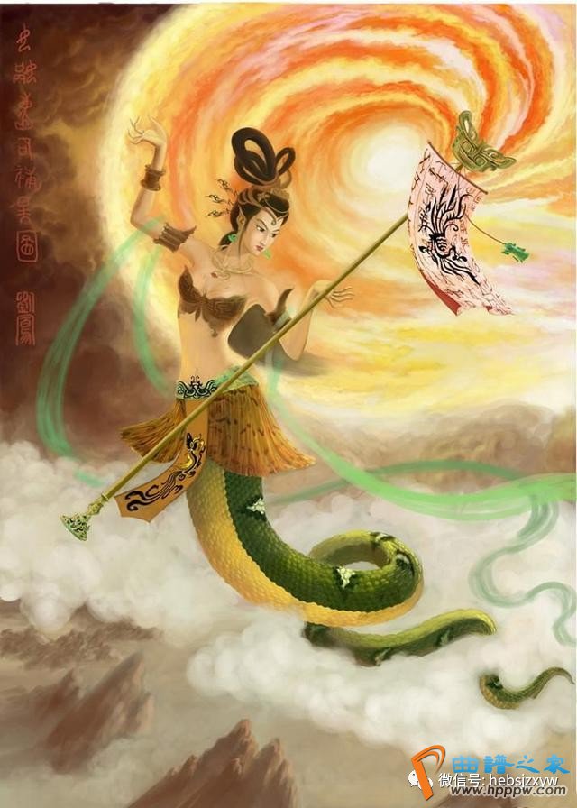 伏羲:传说里中华民族的人文始祖,是中国古籍中记载的最早的王。相传伏羲人首蛇身,与女娲兄妹相婚,生儿育女,他根据天地万物的变化,发明创造了占卜八卦。