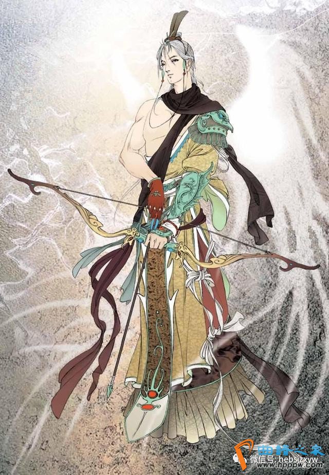 后羿:五帝时期人物,帝尧的射师,嫦娥的丈夫。羿曾经帮助帝尧射下九日,匡扶黎民。人们尊称他为“羿、大羿”。