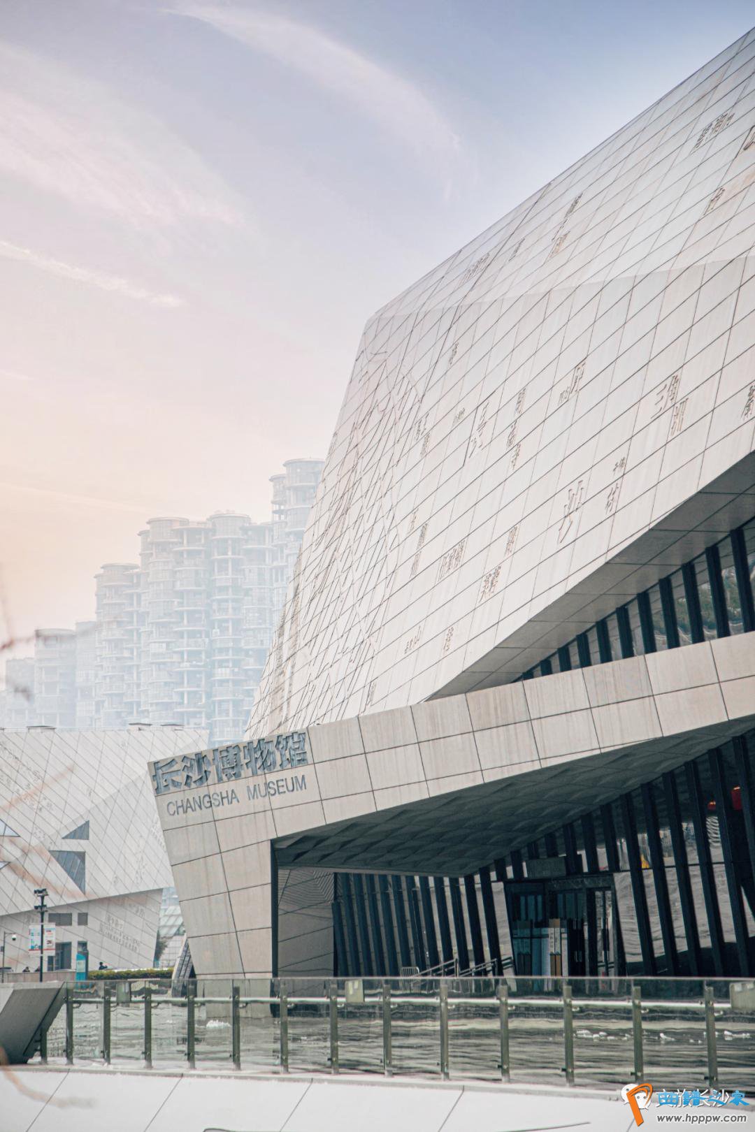 博物馆外墙设计取材于一副80年代的长沙地图,地图采用老宋体标示了十八处路人皆知的地名,对比长沙城市的变迁,令人唏嘘不已。