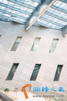 音乐厅外墙图纹取材于古琴名曲《潇湘水云》减字谱,还夹杂了经过裂变,变换的西洋乐谱符号,充分表达了音乐厅的文化内涵。
