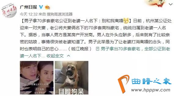 【男子拿70多套豪宅公证到老婆一人名下:别和我离婚】日前,杭州某公证处迎来一对夫妻,老公将夫妻俩名下的70多套高档豪宅,统统归属到老婆一人名下。据悉,当事人男方是某房产开发商。男人在外头应酬多,后来就有了比较亲密的姑娘,事情很快被老婆知道了。男子此举是为了让老婆打消离婚的念头,同时也表明自己的忠心……