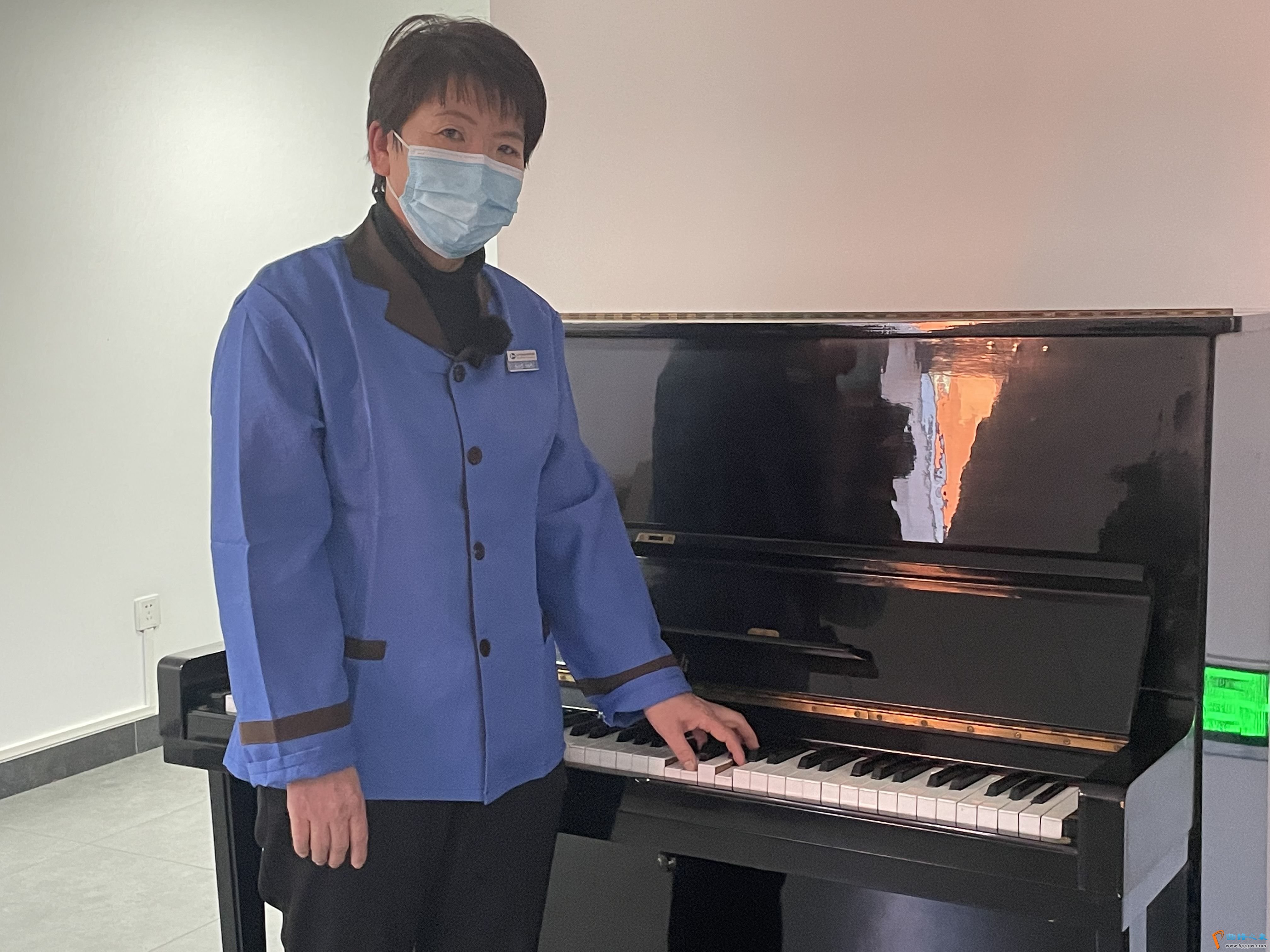 2020年疫情暴发后,场馆内的演出减少,邢国芹下班后开始有一些闲暇时间。工作一天结束后,其他同事都回宿舍休息,邢国芹就放下手中的拖把和抹布,直接奔向四层那架旧钢琴,待上一两个小时。