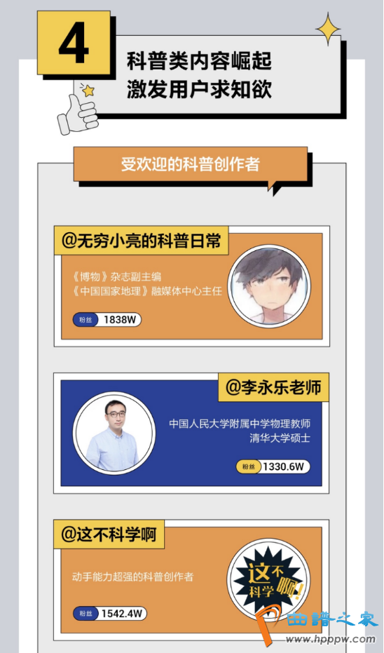 像小亮这样的科普内容正在成为抖音上最新的内容潮流。类似的创作者还有@李永乐老师、@这不科学啊 等,他们成为网友最新追捧的对象。