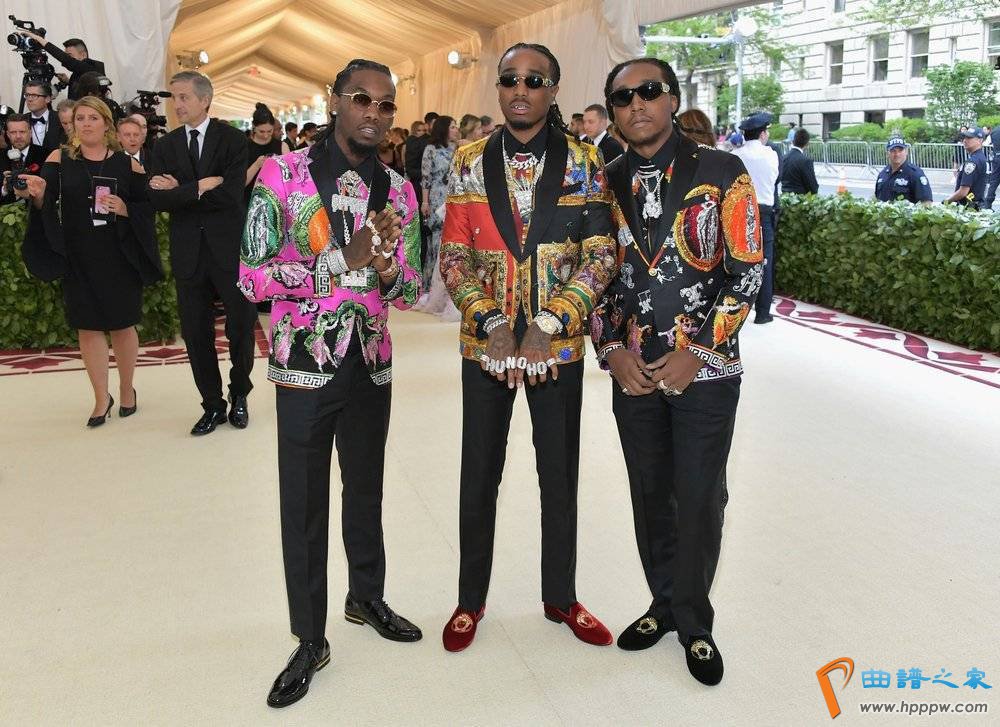 名利双收的Migos甚至混进了混进了时尚圈,接连出现在了2017年和2018年的纽约大都会艺术博物馆慈善舞会(Met Gala)上。