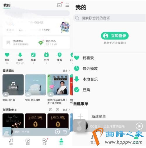 在“我的”界面上,会员充值广告,活动中心等都不见了,只余下“我喜欢”、“最近播放” 、“本地音乐” 和“已购” 四个选项, 去掉了相较多余的功能,加强了用户体验感。