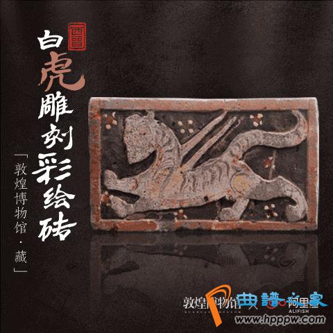 敦煌博物馆登上五福文物彩蛋卡的“白虎雕刻彩绘砖”通体呈长方形,砖面浮雕刻出红色边框,边框内为浮雕图案。凹进部分墨色饰底,图案为白色底,后以红、黄等色彩绘,墨线勾勒。白虎是中国古代原本指方向的星辰之名,即天象的二十八星宿,这是古人用作观察日月五星运行坐标的28组恒星,原属于远古星宿崇拜的产物。