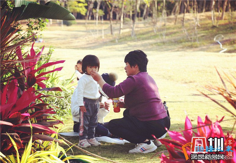 往里走,一大片草坪映入眼帘,夕阳照晒,撒下无数金光。铺开一张户外垫,人们坐下闲谈,感受大自然的味道,身边的孩子们追逐嬉戏,笑声阵阵,甚是惬意。