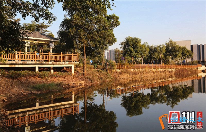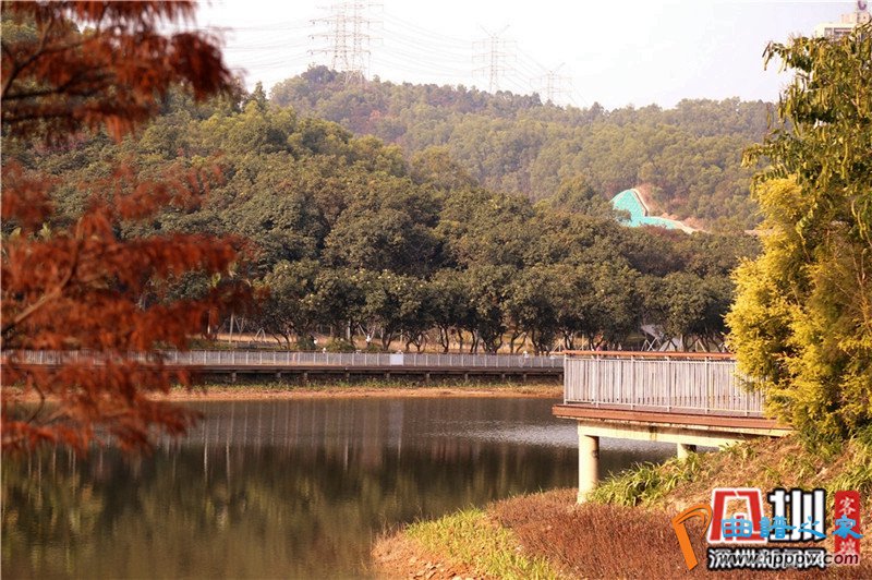 走到神仙湖,极目远眺,丛林簇拥之中一条绿道蜿蜒其间,周边是湿地和水库景观。水塘上的木栈桥、观水亭让市民可以亲临到湿地中央探秘,给人一种心旷神怡的空间感,与景观融合的建筑物布置在恰当之处也形成了人文景观,给人一种宁静的享受。