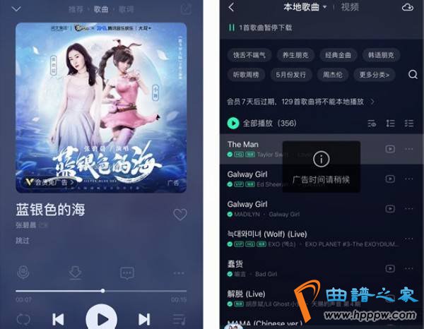 在选择开启免费听歌模式后,马上就会进入15秒的贴片广告,在看完广告后,就会提示用户可以免费听VIP歌曲了。但是需要注意的是,所提供的免费听歌时长为自然时长、而不是使用时长,是从获取时开始倒计时。