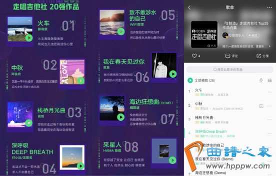 “走唱吉他社”是面向广大音乐达人推出的吉他弹唱作品评选活动,旨在发掘优质的吉他歌谣原创作品,召唤有弹创才华的音乐人。自6月15日大赛正式开启,就立即吸引了大批原创音乐人参与。经过近一个月的激烈角逐,大众乐迷最终评选出《火车》《采星人》等20首音乐作品。这些歌曲虽然都以吉他作为主奏乐器,但在编曲构建和配器上个人特色鲜明。更为“走唱吉他社”优质作品打造专属歌单,让大众看到吉他创作的无限可能。