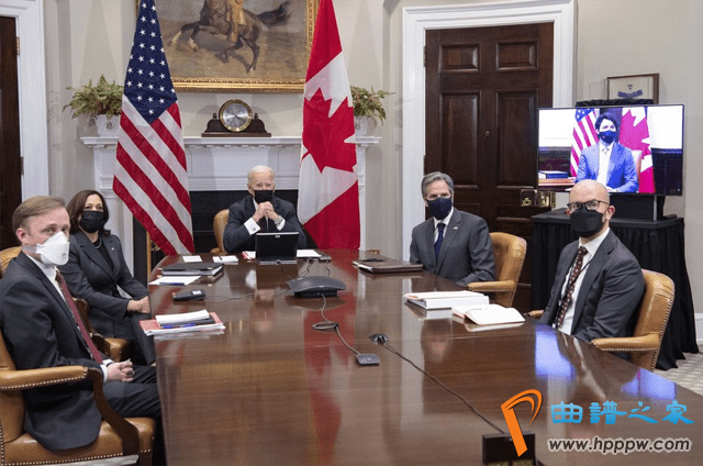 当地时间2021年2月23日,拜登与加拿大总理特鲁多进行了线上双边会晤