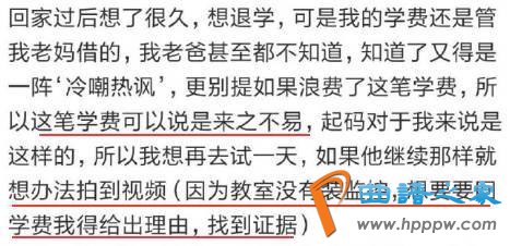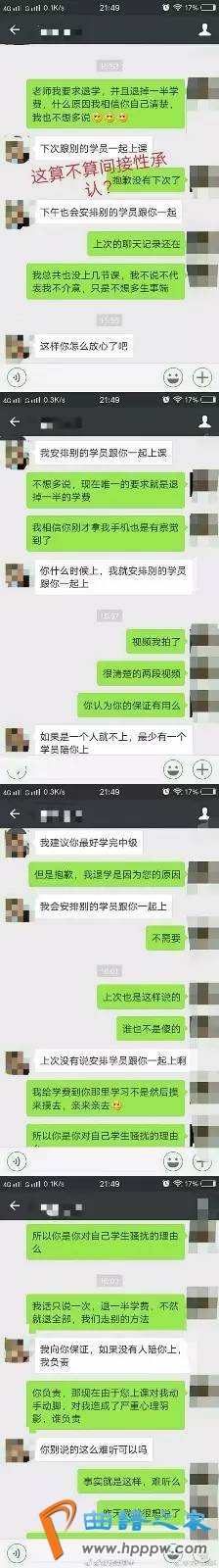 考虑过后,该名受害女网友决定要求老师退回学费,老师拒绝并提出会安排多人一起上课,解决该女生的困扰,女生见协商未果,决定通过偷拍视频收集证据,另寻解决途径。