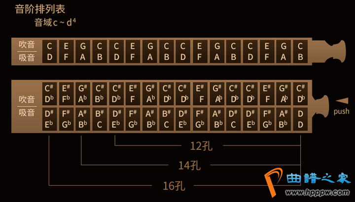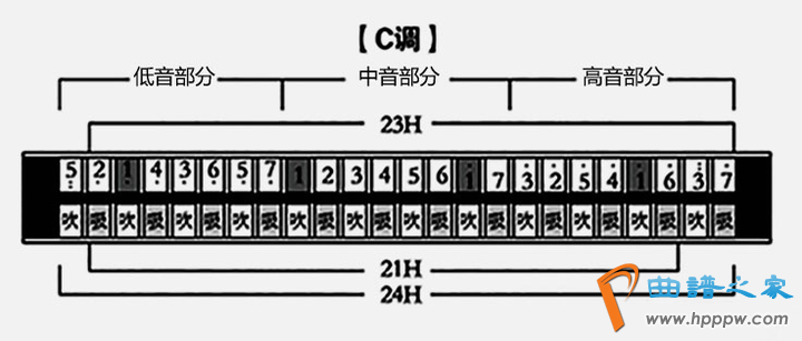 在亚洲特别流行也最为常见,也是很多人觉得最适合新手学习的一种类型,有16孔,21孔,24孔等,比较常见的是24孔。与布鲁斯口琴不同的是,复音口琴有两排格子,上下一组格子相当于一孔,每个格子里面都有簧片,也就是常见24孔,就有48个簧片。