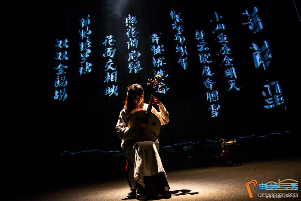 “小山重叠金明灭,鬓云欲度香腮雪。”音乐会开场,未见其人先闻其声。正当观众四处找寻时,吴双一身长袍,一把折扇,从观众席中走了出来。一曲《菩萨蛮》,清嗓一副,中阮伴奏,娓娓道来。歌声带着观众穿越回宋朝,只见一位女子在闺阁之中对镜弄妆。
