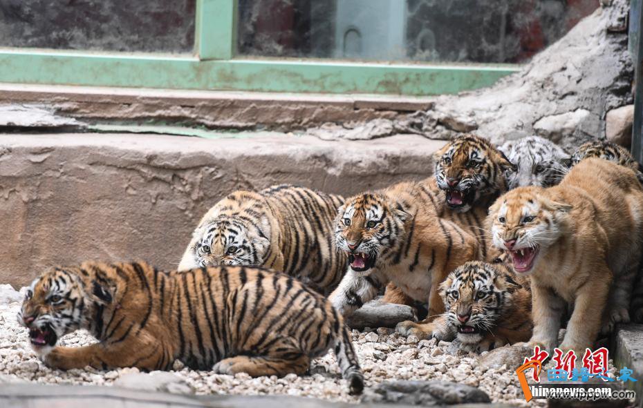 10月17日,济南野生动物世界2017年诞生的12只小老虎集中亮相,霸气模样吸引许多游客驻足观赏。据悉,济南野生动物园2017年共繁育成活26只小老虎,其中2只是“虎中极品”金虎。 中新社记者 张勇 摄