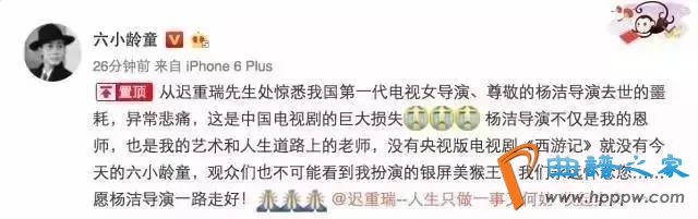 《西游记》中孙悟空的扮演者六小龄童老师发微博悼念,悲痛至极:这是中国电视剧的巨大损失。