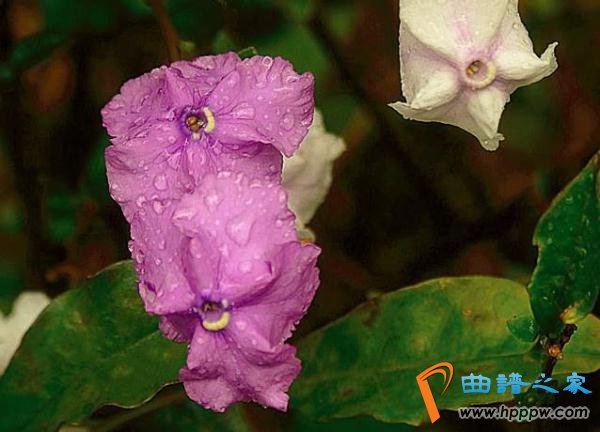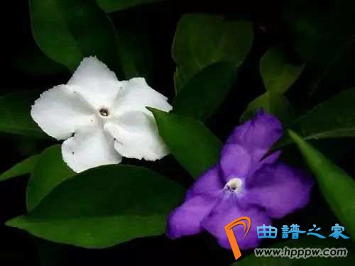 一旦体内植物色素的颜色或浓度发生变化,俏丽的花朵们就会自然而然地来个大变脸。在鸳鸯茉莉的花朵刚刚开放的时候,花瓣中的花青素浓度比较高,花朵的蓝紫色也显得格外深沉。