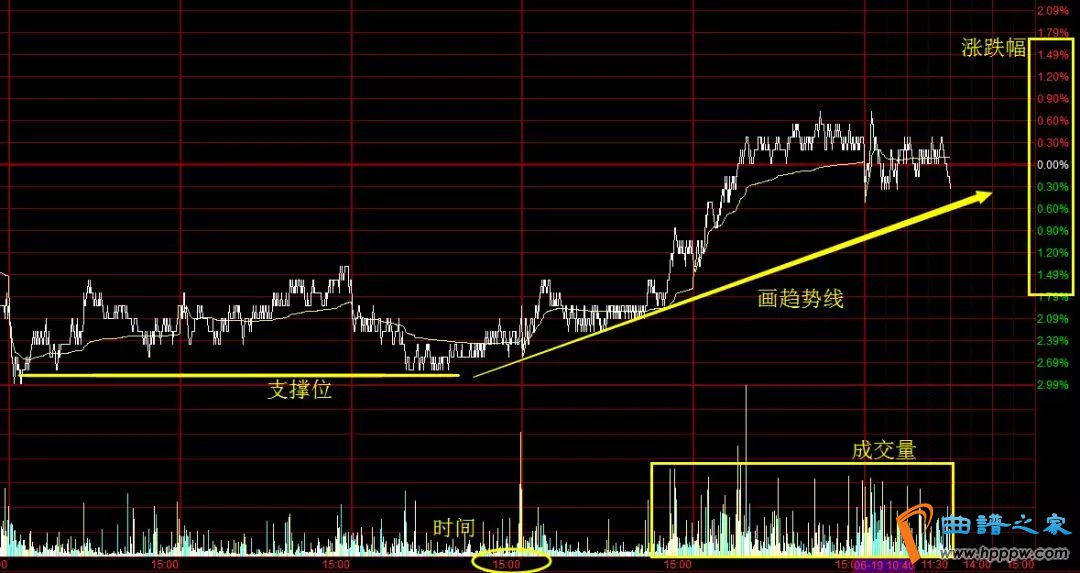 2。学习分时图和K线,熟悉一两个重要的技术指标。先看分时图,分时图比较直观的,涨跌一眼就能分得清,涨跌的幅度、一些支撑压力位、成交量也在盘面上,综合体现出价格运行的时间、空间和幅度,建议画出趋势线,对整个行情走势也就有了一个大致的把握。