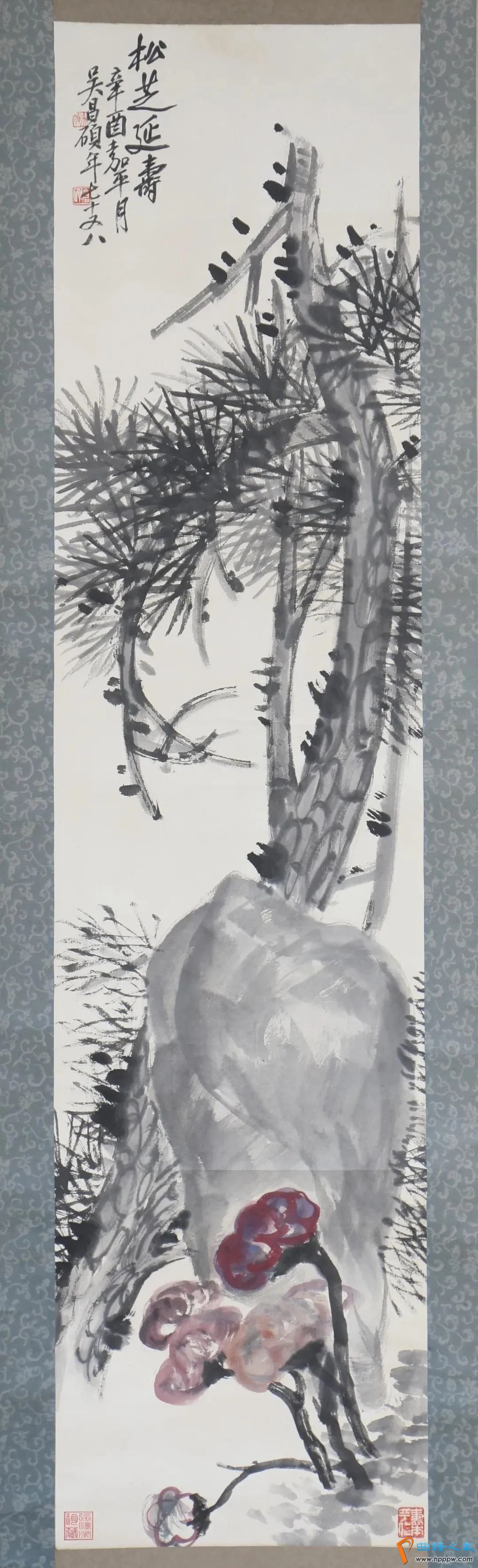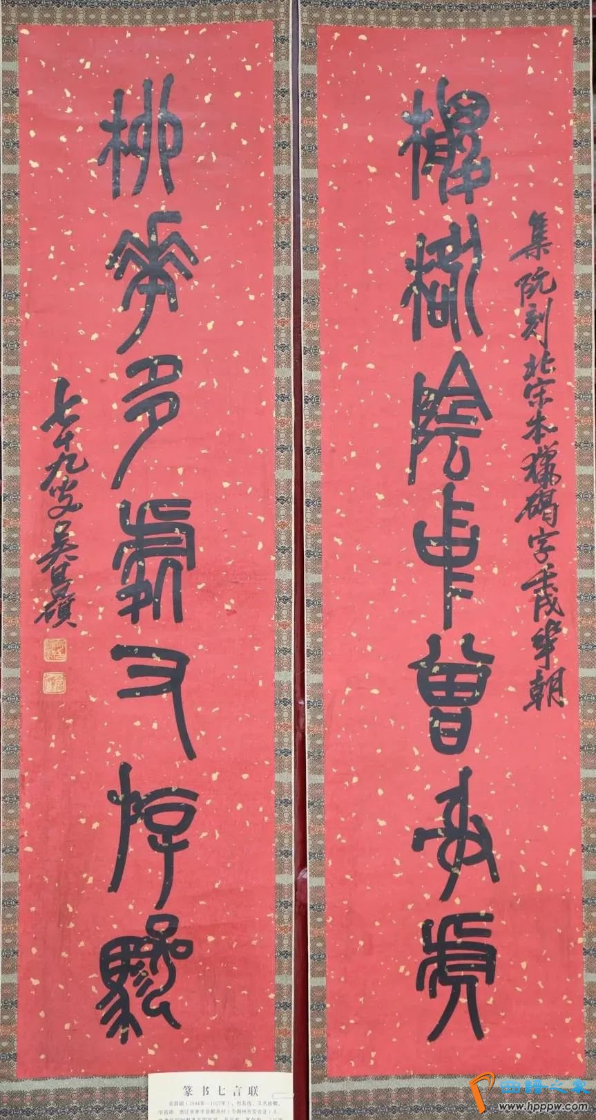 吴昌硕(1844年—1927年),初名俊,又名俊卿,字昌硕。浙江省孝丰县鄣吴村(今湖州市安吉县)人。晚清民国时期著名国画家、书法家、篆刻家,“后海派”代表,杭州西泠印社首任社长,集“诗、书、画、印”为一身,融金石书画为一炉,被誉为“石鼓篆书第一人”、“文人画最后的高峰”,在绘画、书法、篆刻上都是旗帜性人物。齐白石、王一亭、潘天寿、陈半丁、赵云壑、王个簃、沙孟海等均得其指授。