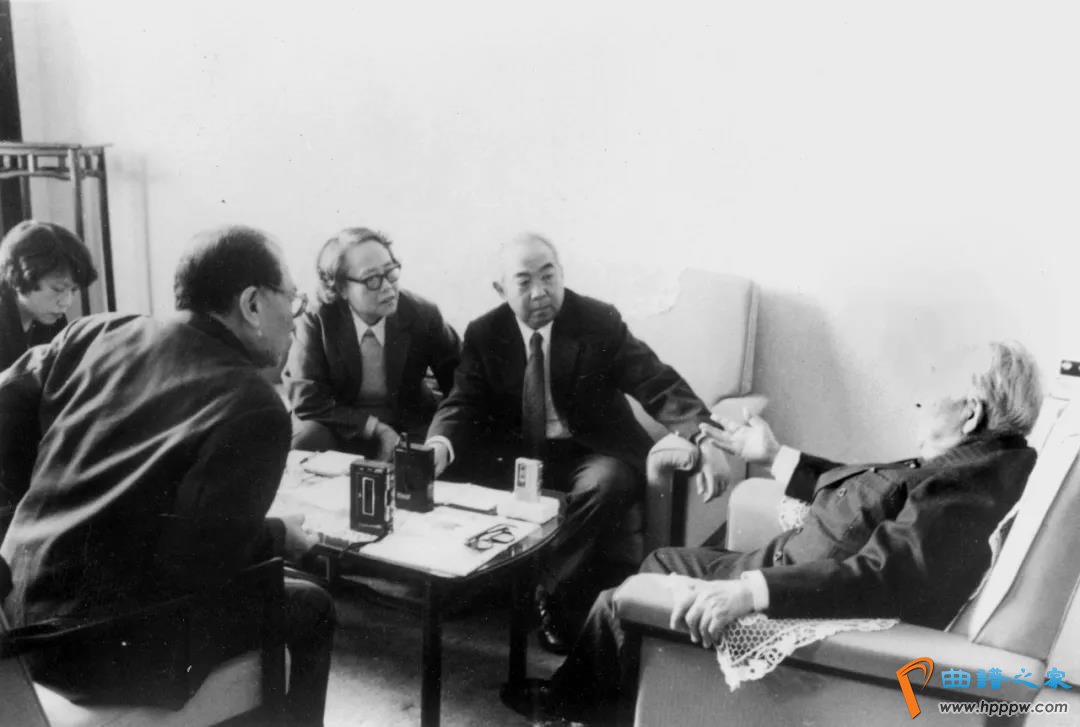 成为副总编以后,老安保持着平易近人的工作作风,善于听取各方意见,特别重视和读者、顾问交心,每当有重要客人或读者团来访她都和其他社领导热情座谈,虚心请教,交换意见,并据此改进服务与工作。上面这张照片,就是宇都宫德马访华时,老安陪同康大川(左)、车慕奇(右)与之座谈采访。几位老领导的表情,可以看出当时的交流有多么务实。