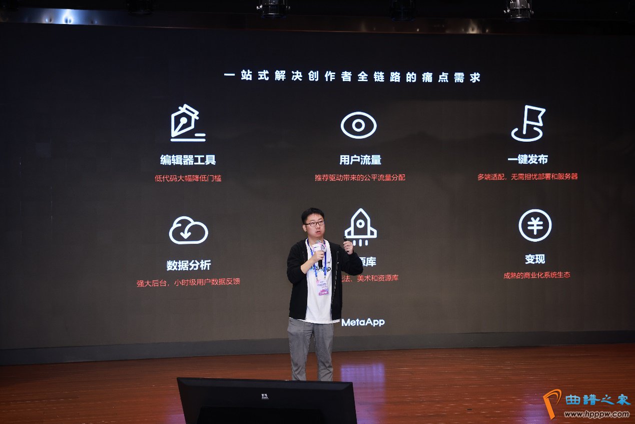 “我们和很多游戏从业者聊过,发现他们普遍的梦想与职业规划是先进大厂做10至20年,赚到第一桶金,再出来做一个自己真正想做的、有意思的游戏。”会上,胡森表示无数游戏从业者对开发出一款自己想做的游戏心向往之,但研发和买量推广成本高昂、创新风险大、创作原子化程度低等传统游戏行业痛点,导致游戏研发门槛极高,中小创作者即使有好的创意也难以线:创始人胡森阐述创作者的困局