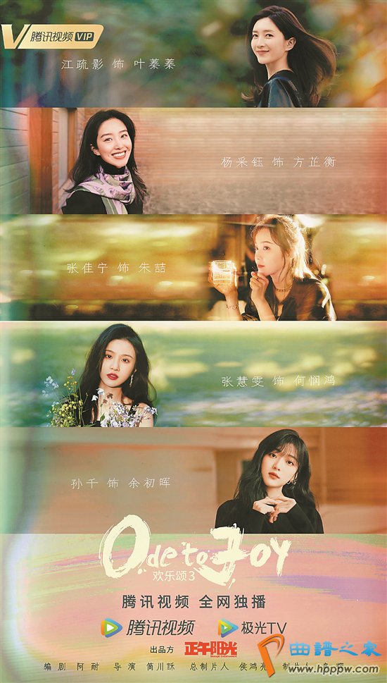 由正午阳光出品、阿耐编剧的《欢乐颂3》即将开机,“新五美”首次集体亮相介绍角色。江疏影说:“我饰演叶蓁蓁,她智商高,从事生命科学研究工作,是22楼的守护天使。”杨采钰说:“我饰演方芷衡,她在前期富有神秘感,体能非常好,个性潇洒。我给她取了个外号叫‘女侠’。”张佳宁说:“我饰演朱喆,她非常智慧,有能力又努力。”张慧雯说:“我饰演何悯鸿,她可爱、纯洁、真诚。”孙千则说:“我饰演余初晖,她聪明、有趣,很有社会范儿。”