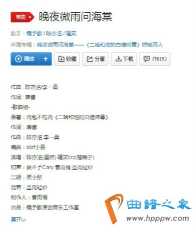 - 《二哈和他的白猫师尊》同人主题曲晚夜微雨问海棠纯歌词完整版