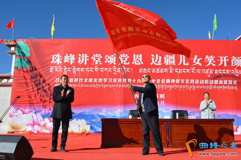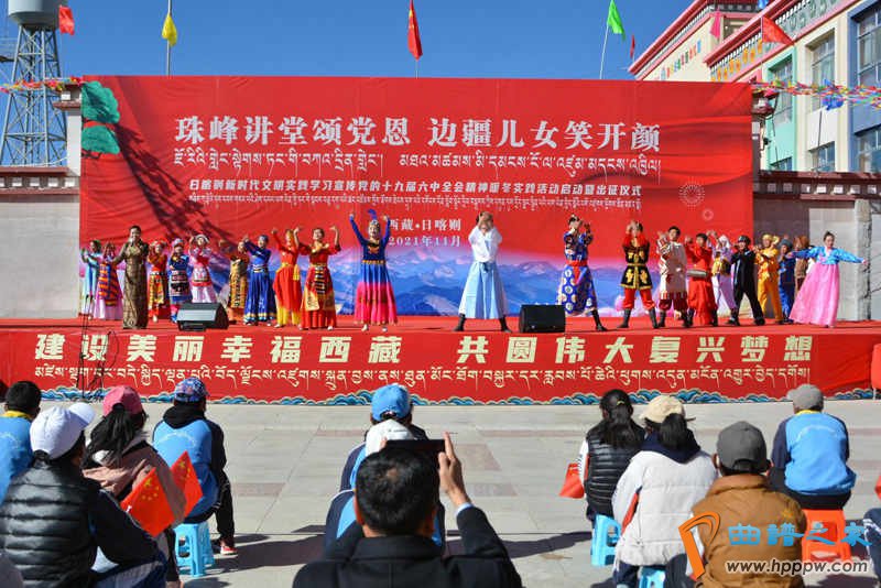 11月24日,在日喀则火车站对面的桑珠孜区甲措雄乡斯玛占堆广场,人声鼎沸、暖意融融、热闹非凡,以“珠峰讲堂颂党恩·边疆儿女笑开颜”为主题的日喀则新时代文明实践中心学习宣传贯彻党的十九届六中全会精神暖冬实践活动启动暨出征仪式在这里举行。