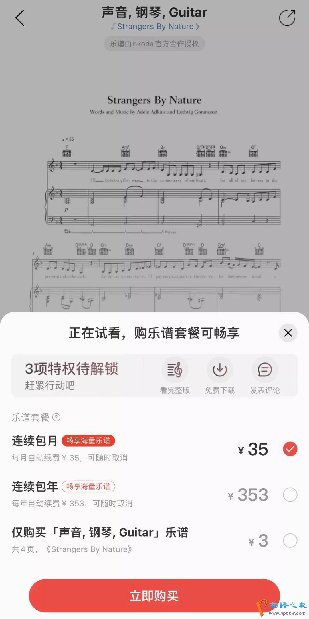 但这并不是免费的,而是需要购买才能观看。与音乐播放会员一样,网易云也设置了“乐谱套餐”,一张乐谱3元,年付353元,包月35元。版权保护无可厚非,但对于初学者来说,或许更偏向的是。