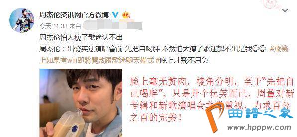 别被“周杰伦怕太瘦了,歌迷认不出”欺骗了!周杰伦为了新专辑,到处采风,确定主题。还为了配合新专辑成功瘦身,为此短时间会戒掉奶茶(周董最爱饮品)。目测最少瘦了二十斤。有歌迷、有官方社交平台、有近照为证。新专辑会在年底之前出来,作词人方文山在其个人社交平台疑似透露了小段歌词,还有周董年底演唱会拟邀嘉宾是阿信!