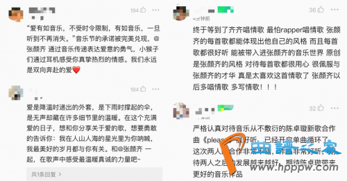 不仅乐迷直呼上头,这首超有爱的合作曲,也吸引了众多乐评人的关注。知名音乐博主灯灯HOHO评价这首歌曲!“这是一首动感且充满活力的歌曲,轻快的节奏,配合着二人轻盈且青春的歌声,在音乐中遇见一场甜蜜且浪漫的邂逅。”乐评人五毒毒和鹿野子也都点赞了两人的合作,分别称赞道“两位的搭配高质量地完成了这首雷鬼舞曲纵情欢乐的气氛”和“整首歌都充溢着浪漫性感的气息”。乐迷听完后也纷纷点赞,并在各大平台争相安利,感慨!“这样的宝藏合作,请再多来点!”
