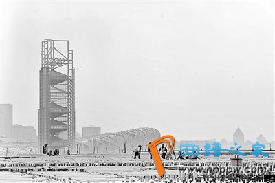 2月底,北京青年报记者在国家会议中心二期施工现场看到,场馆已经进入装饰装修阶段,在场馆东侧,巨幅大玻璃和乳白色单元体构成的“群鸟”幕墙,在阳光的照射下,仿佛大鹏展翅带动群鸟飞翔。