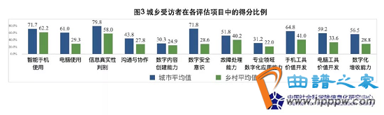 当下,这项任务已是刻不容缓。从社科院针对上千名城乡居民的调研结果来看,城乡“数字素养鸿沟”现象非常突出。以100分为满分,城市居民在数字素养评估中的平均得分为56.3分,乡村居民仅35.1分,差距高达21.2分;分职业来看,农民职业群体的数字素养得分仅18.6,比平均值低57%,远低于其他职业群体。