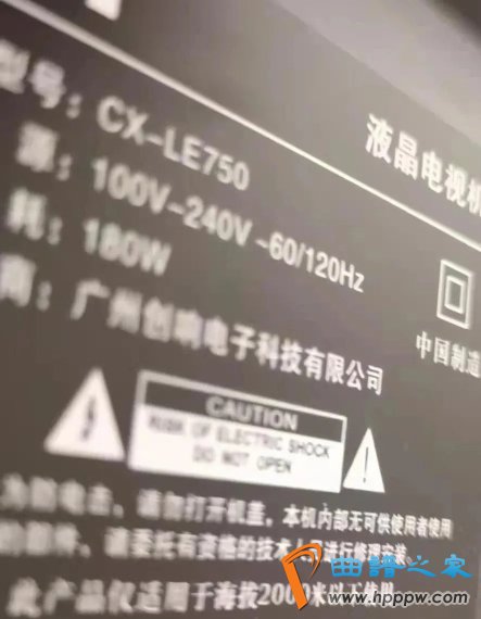 这款电视在京东商城产品介绍上写的是“长虹”品牌,收到的货品无论是电视机还是包装上,都没有任何“长虹”标识。电视背面产品铭牌显示,制造商是广州创响电子科技有限公司。